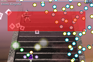 例えば5面以降のスペカ時の高速ショットの場合、ダメージ56以上で桜効率が落ちます。